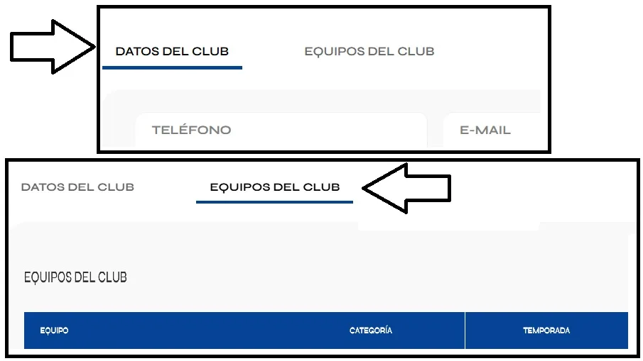 En aquest llistat veuràs el nom de tots els clubs que actualment tenen equips federats. Al clicar a sobre del nom del club que t’interessa, hi trobaràs les dades de contacte i els equips que hi ha en aquest club. Tal com es mostra en la imatge que hi ha sota.