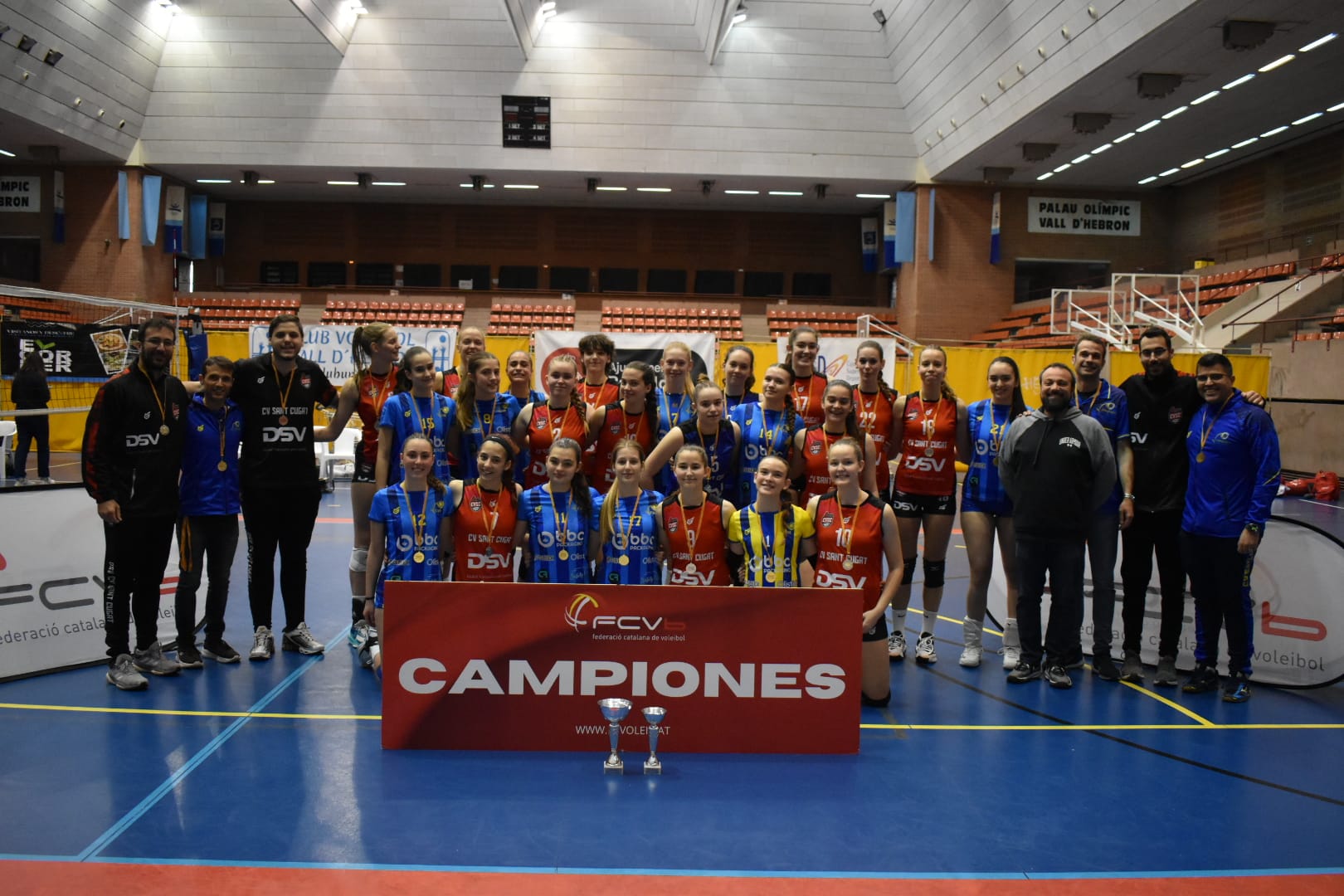 Van ser les blaugranes les afortunades després d’un partit molt dur que es va allargar fins al cinquè set, les que es van imposar a l’equip de Sant Just. Així, el Barça CVB, com a terceres classificades, tancaven la llista d’equips que viatjaran Astúries del 8 al 12 de maig per disputar el Campionat d’Espanya de categoria cadet femenina. A la gran final, les noies d’Ivan Silverio no van donar opció a les de Joshua Perez i es van endur la copa de campiones de la fase després d’un 3-0. Toni Blesa, membre de la Junta Directiva de la Federació Catalana de Voleibol, va ser l’encarregat de fer l’entrega de trofeus a les campiones i sotscampiones d’aquesta competició.