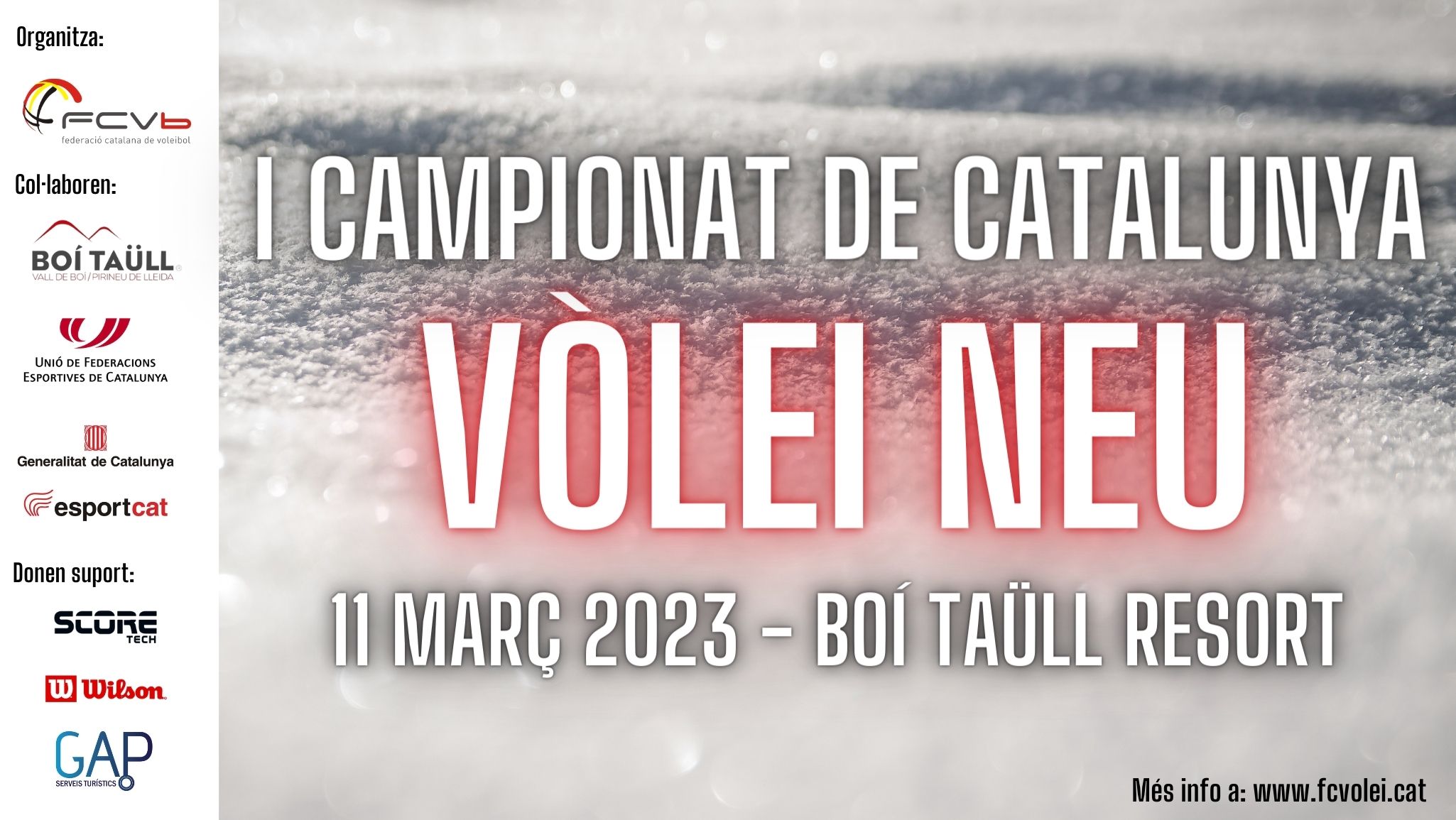 El proper 11 de març l’estació de Boí Taüll Resort viurà un dia de neu intens i inèdit. Per primera vegada a les seves pistes no s’hi aplegaran únicament esquiadors i snowboarders, sinó que també hi haurà jugadors i jugadores de vòlei. Concretament de vòlei neu. La Federació Catalana de Voleibol segueix innovant i estrena aquest 2023 una nova modalitat de joc que donarà vida al primer Campionat de Catalunya de Vòlei Neu. Tot i que a casa nostra el vòlei neu és una modalitat molt desconeguda, a nivell europeu té fins i tot calendari de competició oficial i de fet la Federació Internacional de Voleibol (FIVB) el vol expandir a cada continent aquesta temporada.