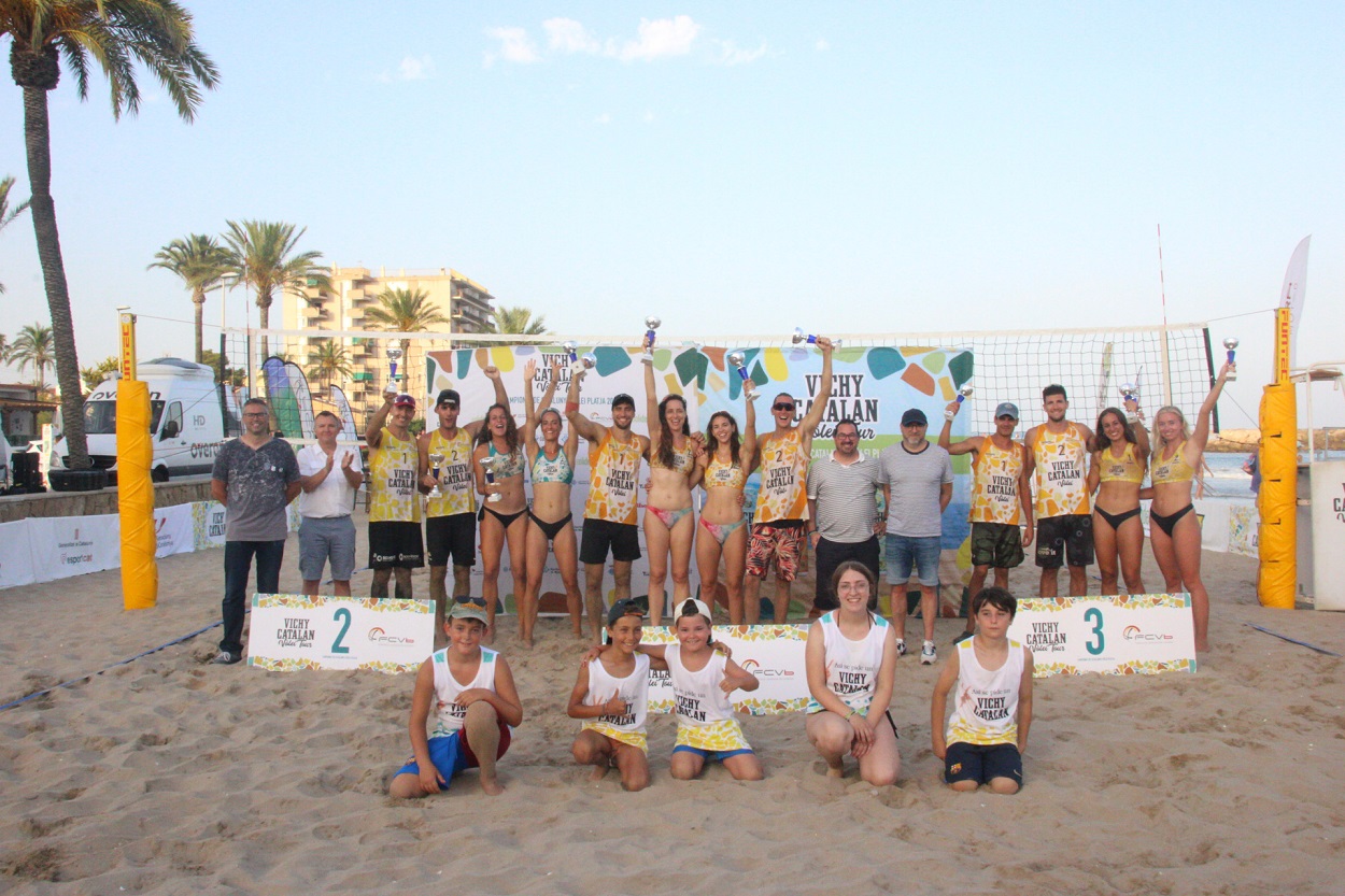 El Regidor d’Esports del municipi tarragoní, Xavi Lorenzo; José Manuel Cabada, Regidor de Platges de Cunit; David Marquínez, Regidor de Noves Tecnologies de Cunit; i Josep Clusella, membre de la Junta Directiva de la Federació Catalana de Voleibol van fer entrega dels diferents trofeus als triomfadors d’aquesta cinquena prova del Vichy Catalan Volei Tour, el qual descansarà unes setmanes per tornar el cap de setmana del 30 de juliol amb la sisena prova, que tindrà lloc a Cambrils.