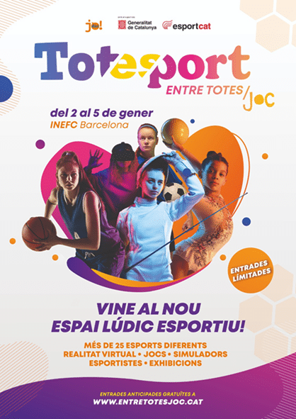Totesport és un Espai lúdic esportiu que envolta l’esport femení Català, on les federacions, els clubs i esportistes referents de l’esport femení ens ensenyaran les seves disciplines i compartiran espais amb les visitants. Aquesta activitat, on el vòlei platja català tindrà un espai propi es farà a les instal·lacions de l’Institut Nacional d’Educació Física INEFC de Barcelona ( Av. de l’Estadi, 12-22) del 2 al 5 de gener.