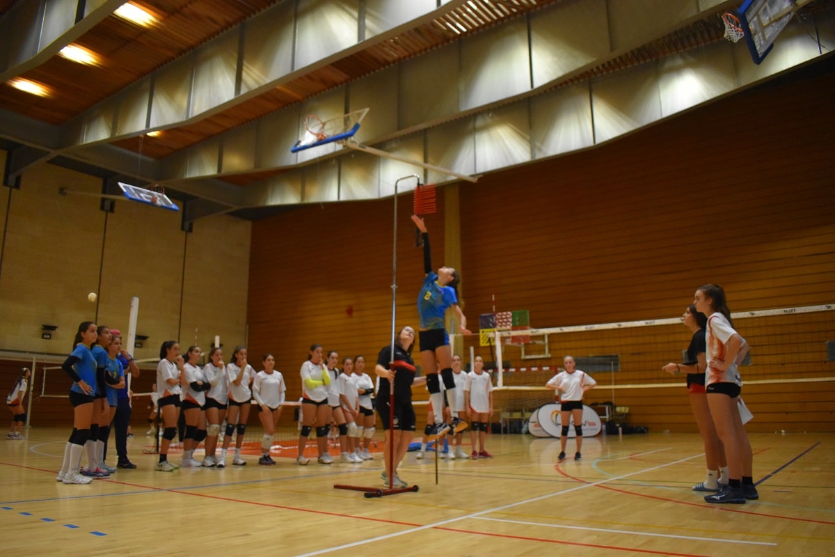 El primer dels torns va ser ocupat per l’infantil femení, que va comptar amb 67 esportistes. Abans de sortir a la pista, tothom va ser mesurat per conèixer la seva alçada i l’abast a una mà. Un cop els esportistes eren sobre el parquet, es va dur a terme el clàssic exercici 1X2 (recepció, toc de dits i rematada) per equips amb un format rei de la pista, a més de mesurar la capacitat de salt. Posteriorment, varen saltar a pista els infantils masculins, els cadets femenins i els infantils masculins i, per acabar, els cadets femenins, repartits aquests en 3 torns.