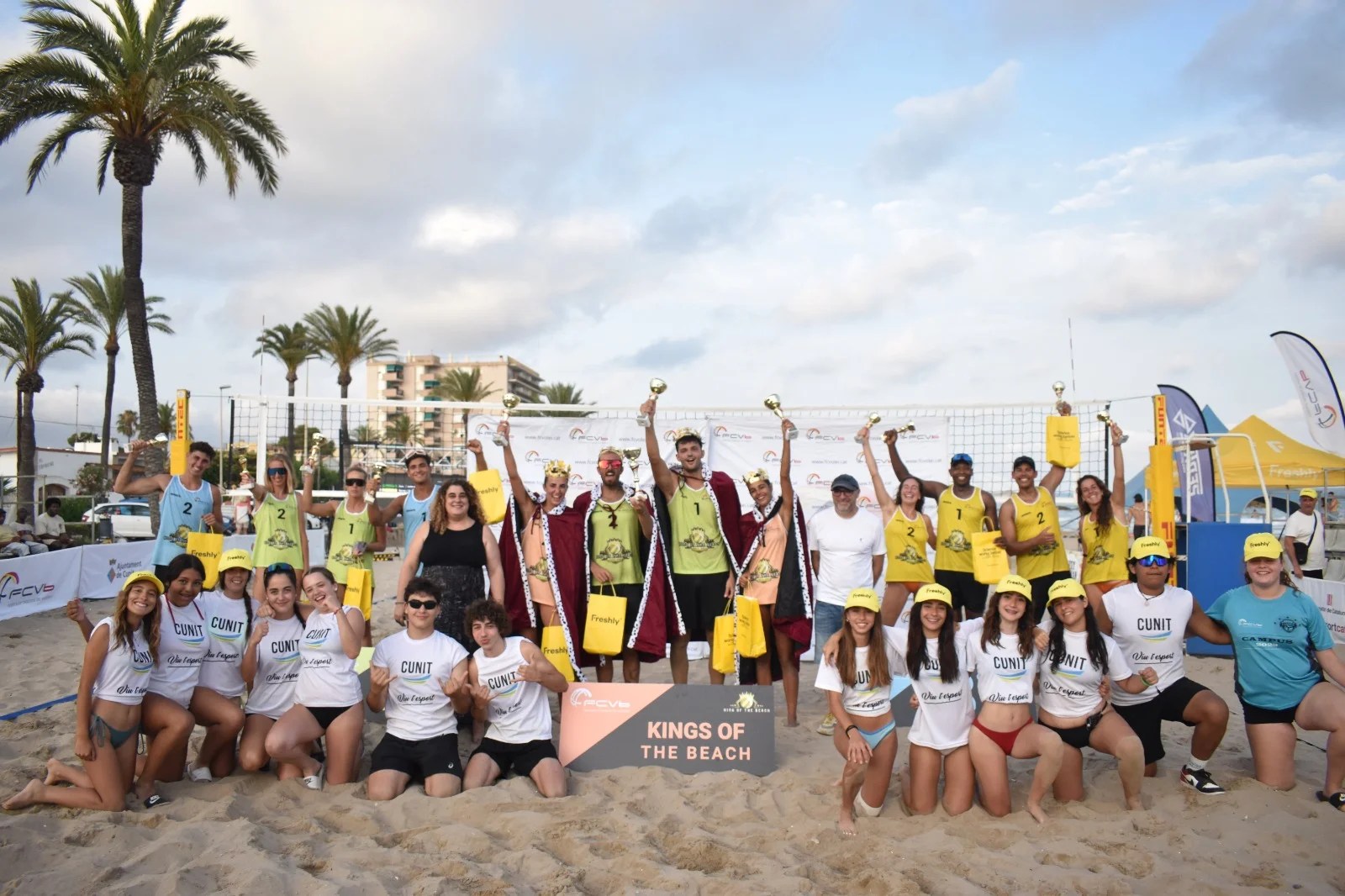 Èxit total en un nou esdeveniment organitzat per la Federació Catalana de Voleibol. El ‘King and Queen of the Beach’, disputat avui a la platja de Cunit, ha acollit a les millors parelles del litoral català, algunes del panorama espanyol i, fins i tot, del panorama mundial. Després d’un gran dia de competició, on l’espectacle ha anat a la par que l’emoció viscuda per les dues graderies, plenes a vessar, les parelles Sergi Reñé – Oscar Jiménez, en categoria masculina, i Daniela Andreu i Elba Páez, en categoria femenina, han estat els grans vencedors de la velada, coronant-se així com a reis de la platja.